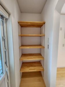 キッチンはクリナップ製品 /パントリーは右横の勝手口に繋がる両側に取付けています。